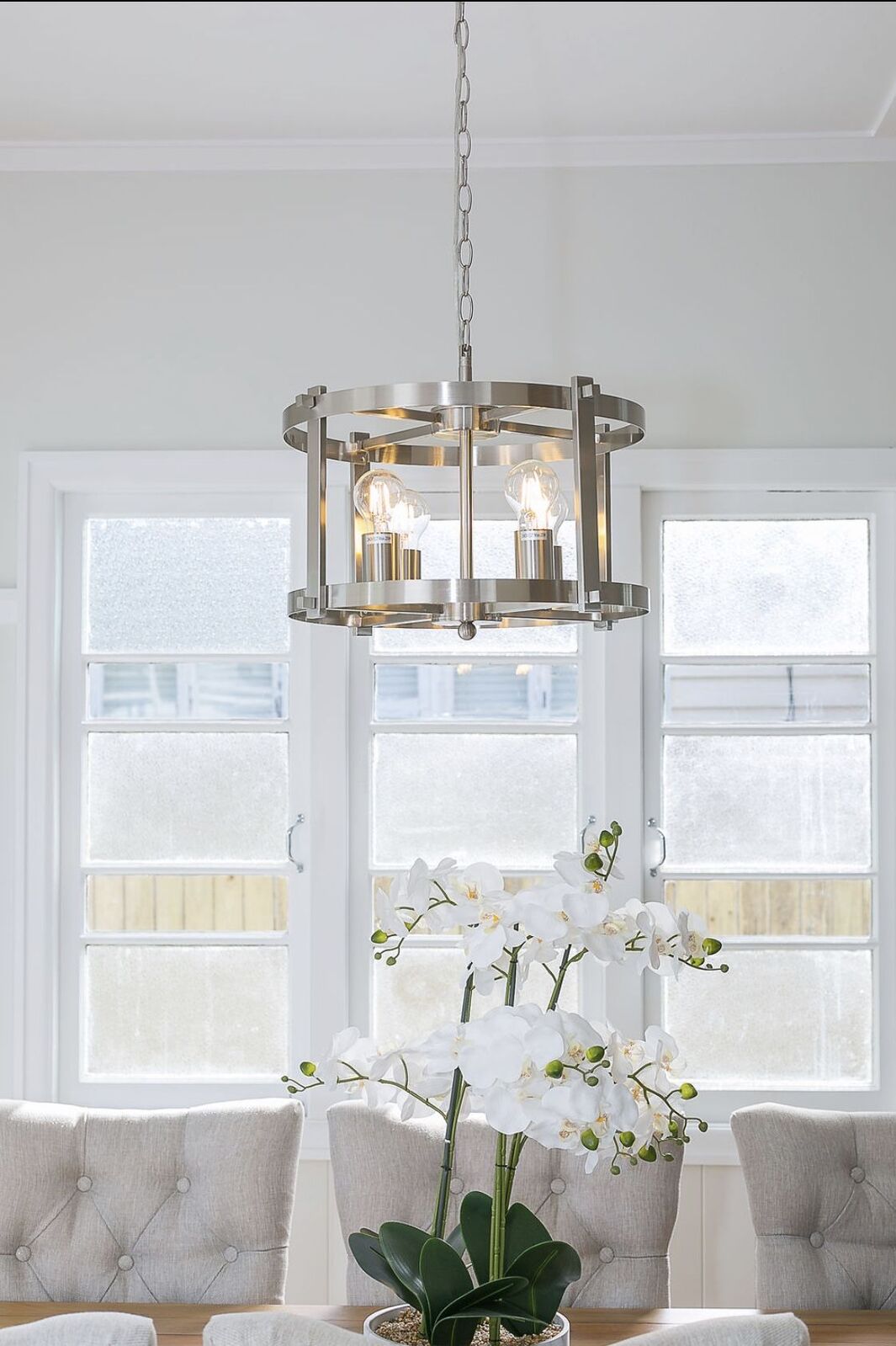 The Finley 46 Pendant combines industrial charm with modern versatility—featuring a bold metal frame available in antique brass, black, or nickel, it elegantly suspends four E27 globes to cast ambient glow in bedrooms, hallways, or dining areas.