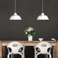 Supplied as a complete pendant, the warehouse-style Forge is an affordable addition to our industrial revival range. The cord suspension can be reduced to suit your application. This Forge has a gloss white outer and inner – providing reflected light onto the surface below. Fantastic choice over a servery!