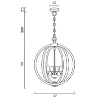 KENDALL PENDANT 4 x 25wE14 D:470 H:590 C:2M CHROME