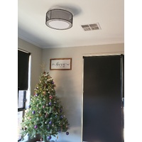 The Loria batten fix shade truly fits all furnishings - modern or classic. The double drum lampshade is a timeless shape with the light being pleasant and warm. The centre body is a white fabric, also covering the bottom and encapsulated with an additional semi-transparent patterned shade. The Loria is ready to fix to your existing batten holder and is available in 2 sizes.