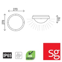The Primo Is A Round, Surface Mounted High Quality Exterior (Ip65) Fitting With An Aluminium Body, Uv Stabilised Polycarbonate Diffuser. The Housing Of This Sg Fitting Is Cast From High Quality Aluminium, Chemically And Electrostatically Cleaned Before The Dry Powder Polyester Coat Is Applied. This Rigorous Finishing Process Ensures That This Fitting Will Look Like New For Many, Many Years. The Uv Stabilized Polycarbonate Diffuser Aids Excellent Light Distribution, With Superior Vandal Resistance. The Exposed Screws Are All Stainless Steel. The High