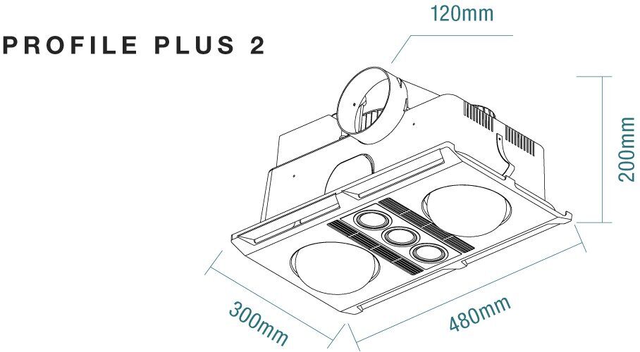 Profile Plus DC 2 3-in-1 Bathroom Heater with 2 Heat Lamps, Exhaust Fan and GU10 LED Light