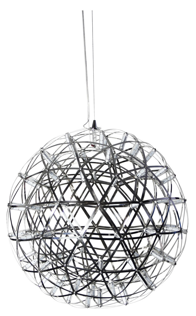 SPATIAL is an exciting LED feature pendant combining geometric stainless steel straps and LED capsules. Not suitable for dimming.