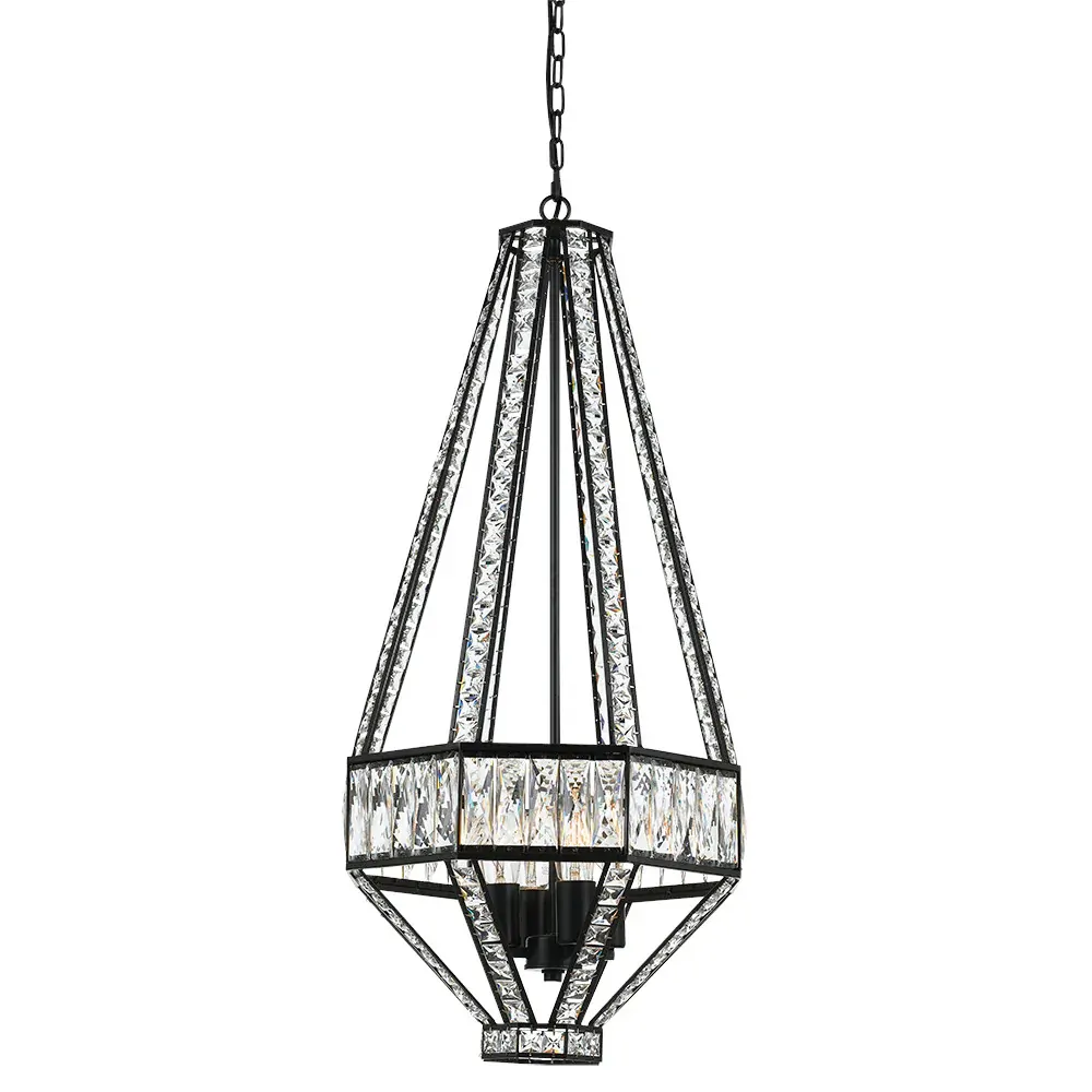 Zofio is Mid-Century Modern style, a love for the retroelements and appreciation of the attention to design detail. Hints of Hollywood glam, rich iron finish, making this black and crystal pendant series a compelling fixture to illuminate any space. Crystal accents framed in blackened metal radiate a glow, offering an enticing lighting effect as it shapes your custom space.