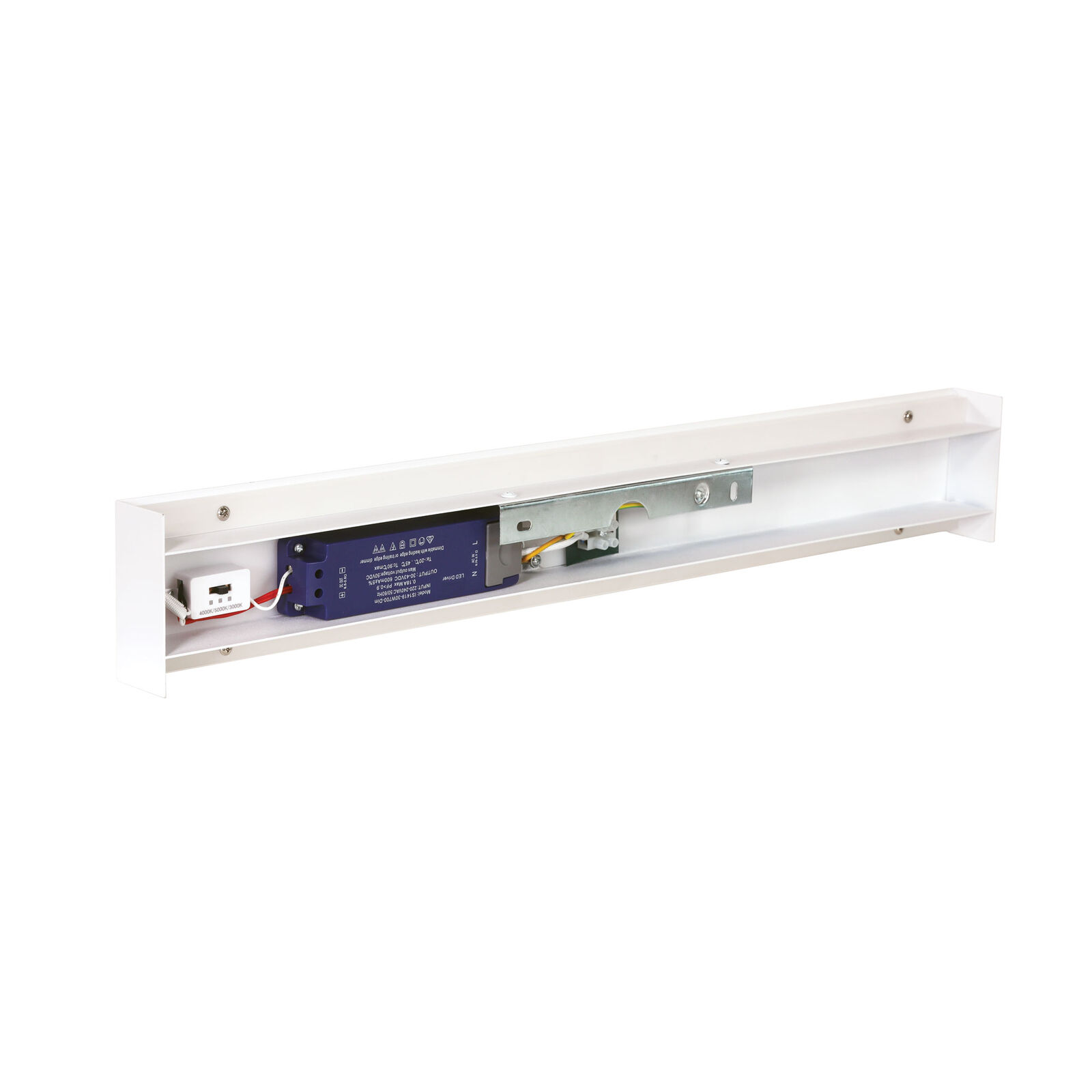 The RAFTER.60, a modern linear backlit wall light. Designed to provide indirect light up and down the wall; a simple design giving a striking lighting effect. This fitting features colour temperature switching (CTS) technology, meaning, the installing electrician can select the preferred colour temperature at time of installation. Can be dimmed using a suitable LED friendly dimmer.