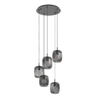 The striking ROMAZZINA pendant range features metal strips and a semi-exposed globe, creating powerful plays of light and shadows in any room it enters