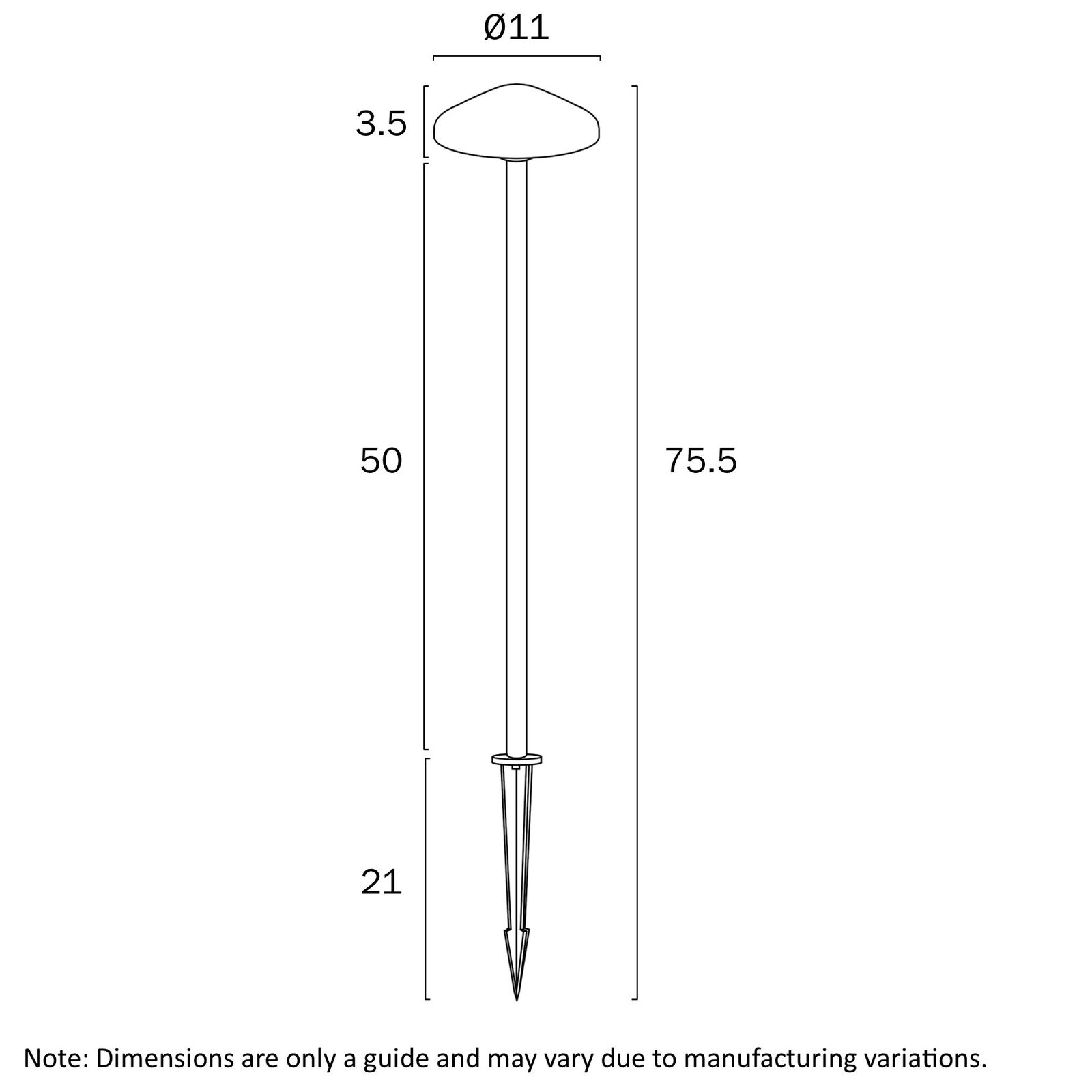 SCAPE POST LIGHT 24v3wLED COB cab.1M D110 H500 IP65 3000K SPIKE H210 180Lm VERDE GREEN