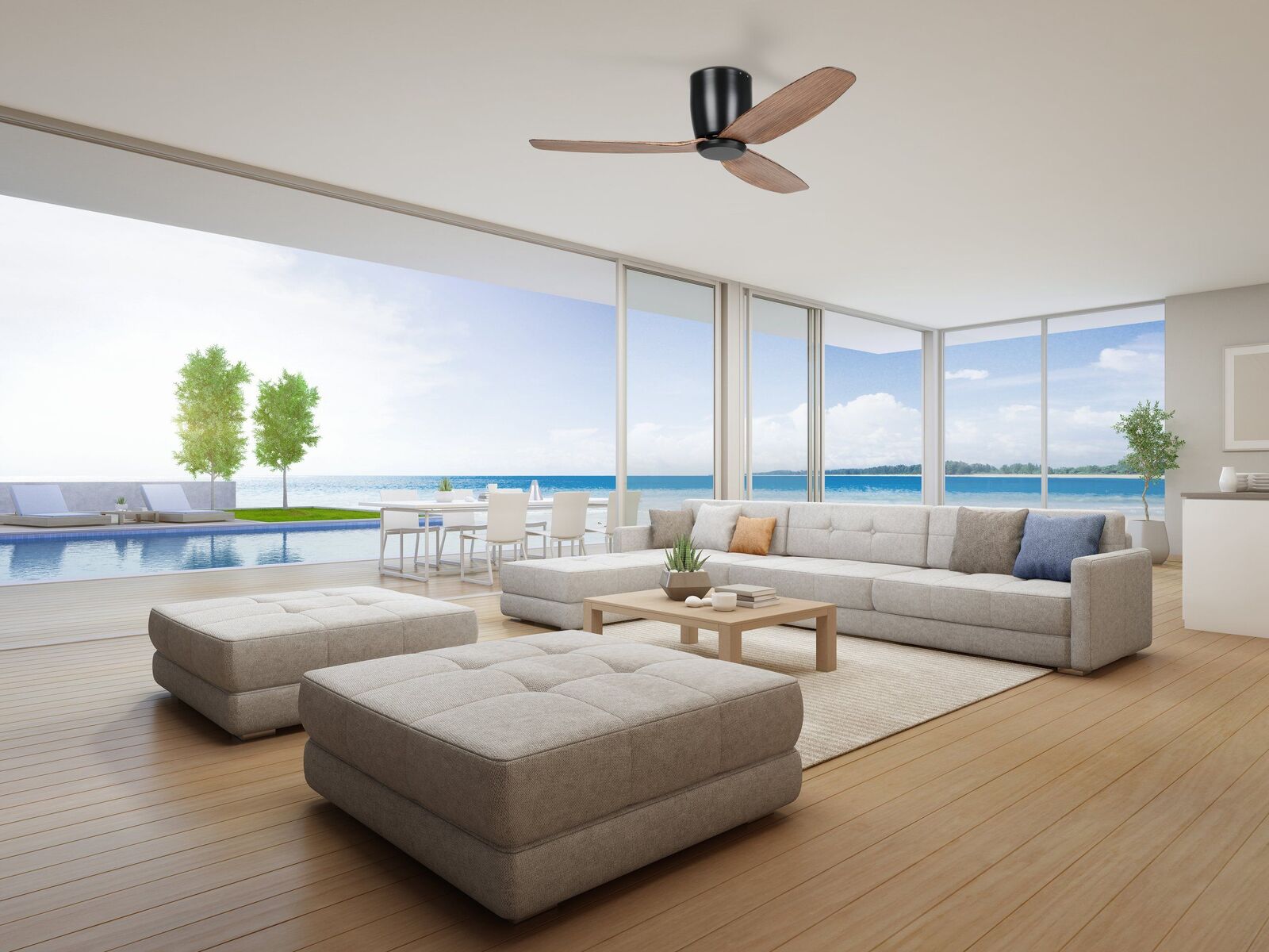 The SEACLIFF ceiling fan has a low-profile design, making it a perfect ceiling fan for homes & apartments with low ceilings. Featuring a powerful DC motor and UV resistant ABS blades.