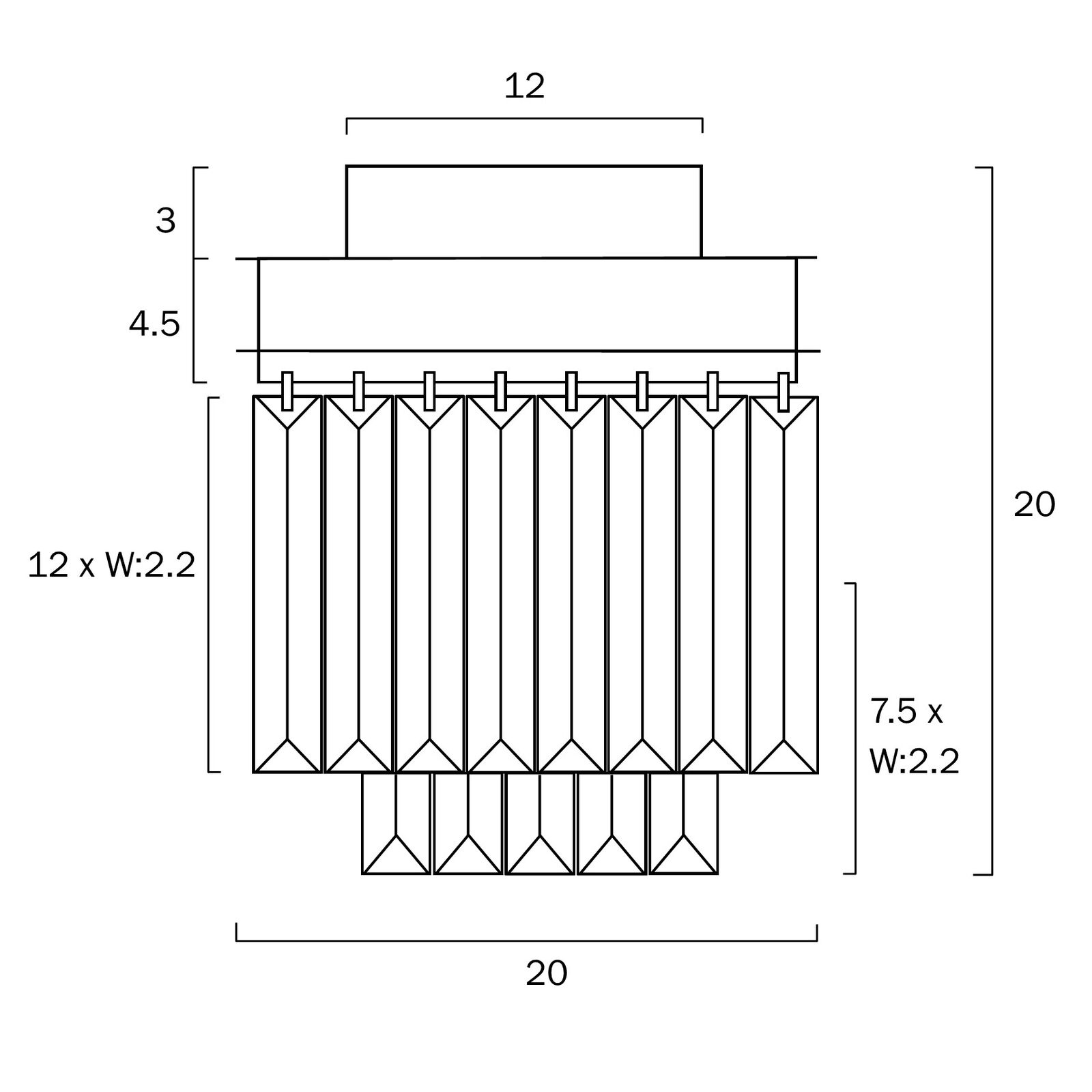 SERENE BATTEN FIX 60w MAX D:200 H:200 BLACK / CRYSTAL