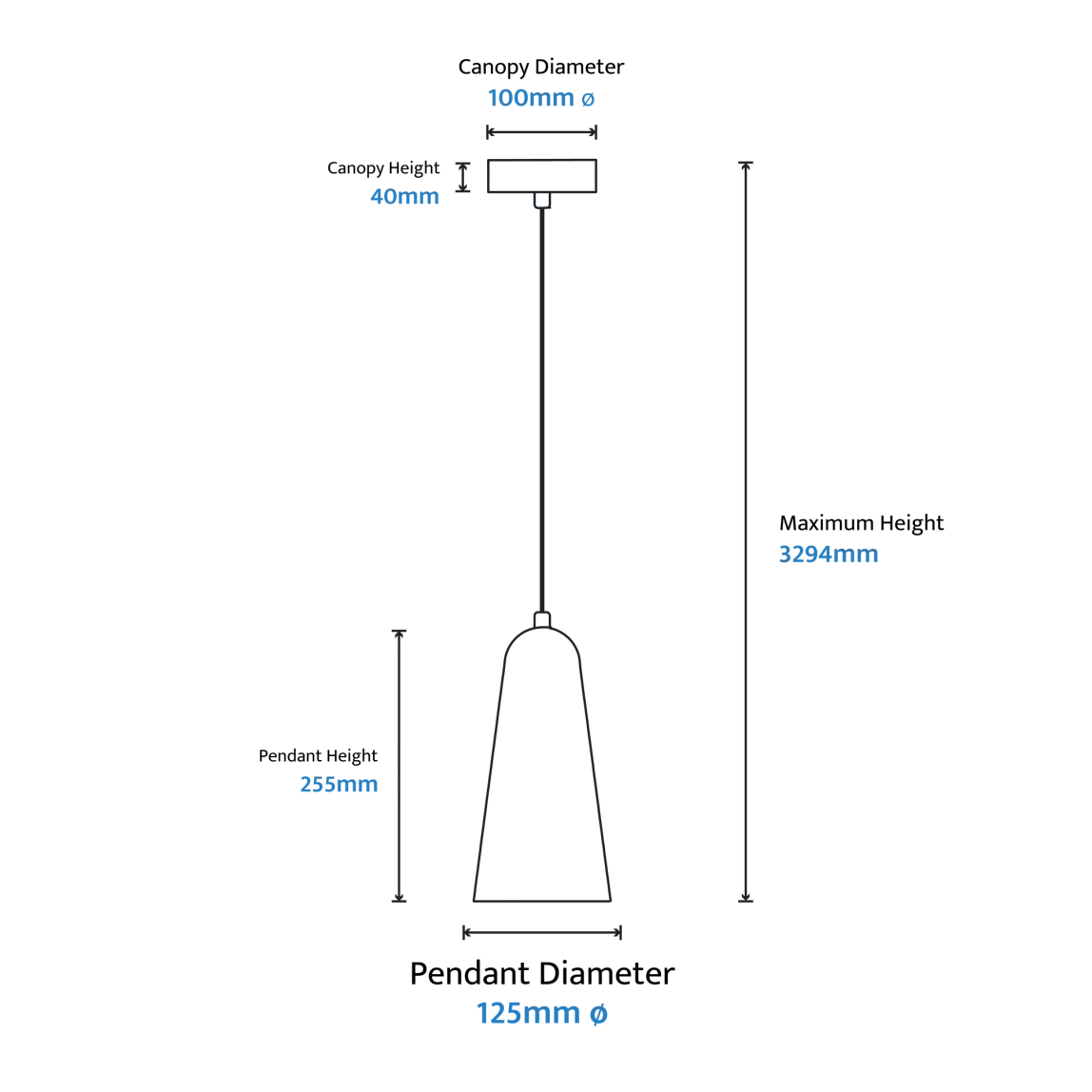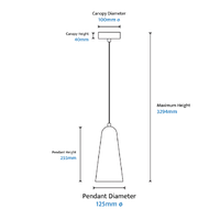 Skua Glass 255mm LED Beam Pendant 5W TRI Colour Non-dimmable Black IP20