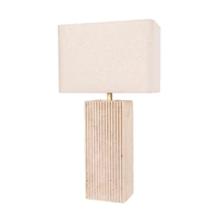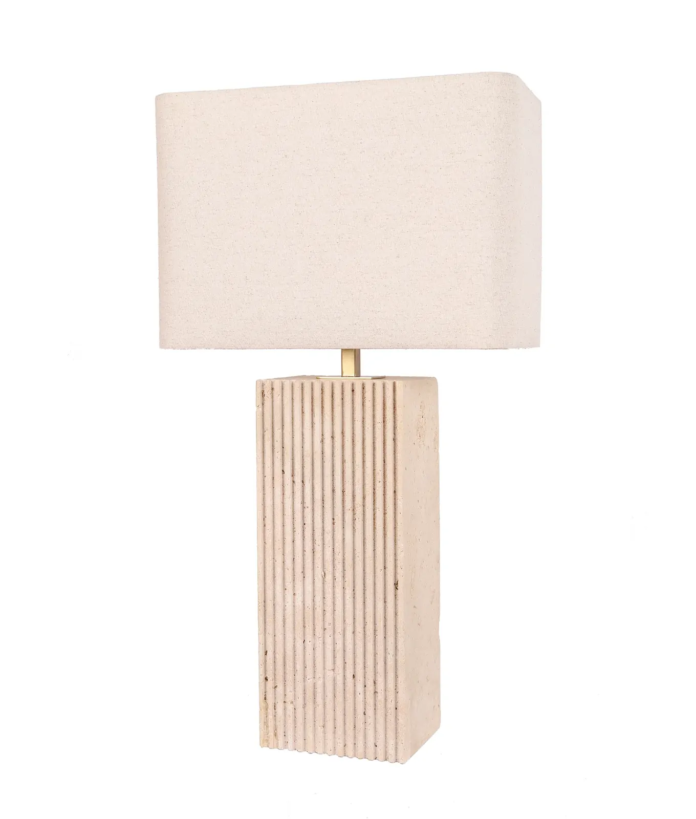 SAGITTA: Beige Travertine Base Rectangular Fabric Cream Shade Table Lamps