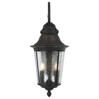 Available in solid brass or sleek black finish, this outdoor fixture features enchanting water glass, reminiscent of antique French lanterns.