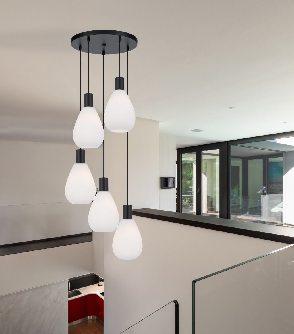 TRESOR 5 LIGHT PENDANT 5x25wE27max D:160 H:210 TEX:2m BLACK MATT/OPAL MATT