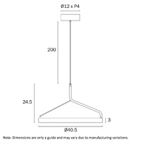 TRUVON 40 PENDANT 20wLED 3CCT 3000K_5000K 1550Lm D405 H245 cab 2M BLACK SAND/ OAK PAINTED