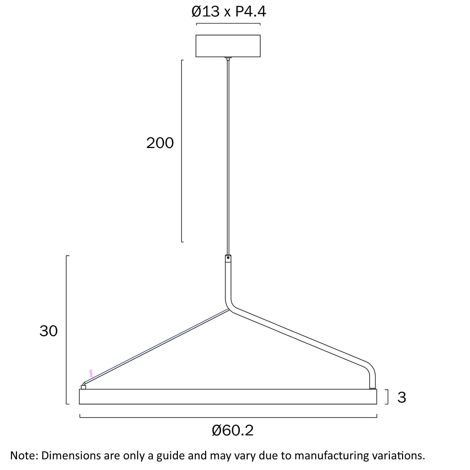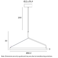 TRUVON 60 PENDANT 32wLED 3CCT 3000K_5000K 2450Lm D600 H300 cab 2M BLACK SAND/ OAK PAINTED