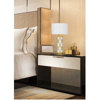 Light up any room with the beautiful Vilma ceramic table lamp. The classic shape is adorned with a hand applied gold finish.