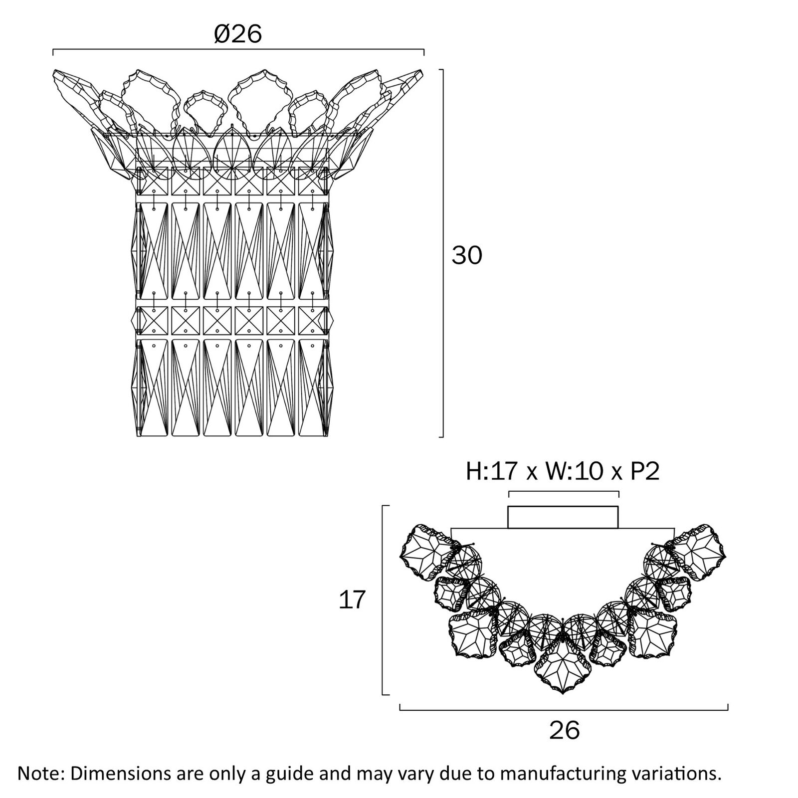 VIRELL WALL BRACKET 2x25wE14max L:260 P:170 H:300 CHROME / CRYSTAL