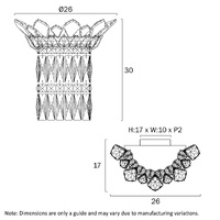 VIRELL WALL BRACKET 2x25wE14max L:260 P:170 H:300 GOLD / CRYSTAL
