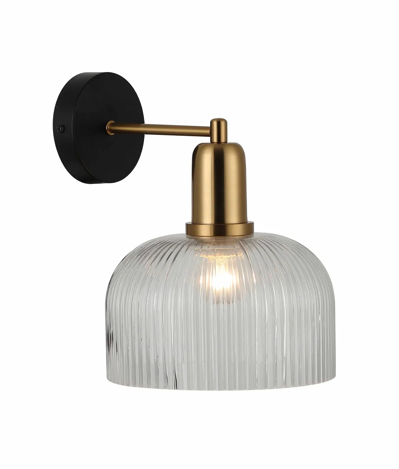 Description: WALL INTERNALS/M ES Max 72W Clear Glass Shade Dome With Antique Brass Bracket W250mm x H265mm WTY 1YR