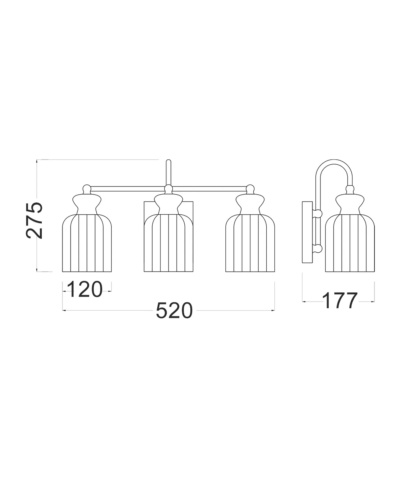 Description: WALL INTERNAL S/M ES 40W Black Finish (Rect Base & Rod) and Clear Ellipse Glass x 3 H275mm x L520mm D177mm (Glass OD120mm each) WTY 1YR