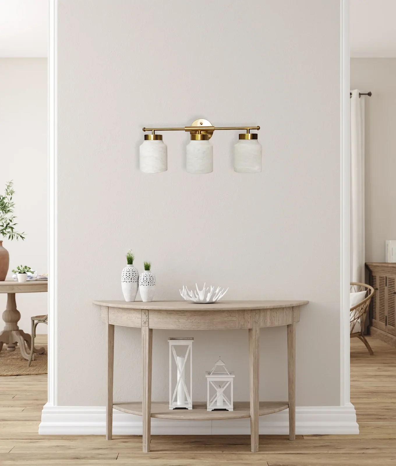 WALL Int S/M ES JAR WH Alabaster x 3 w/Brass Highlight & RND Base OD120mm (Shade)