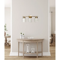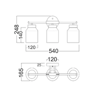 Description: WALL INTERNAL S/M ES JAR 40W Brass Finish (RND Base & Highlight) and White Alabaster Shade x 3 L540mm x H248mm (Shade OD120mm) WTY 1YR