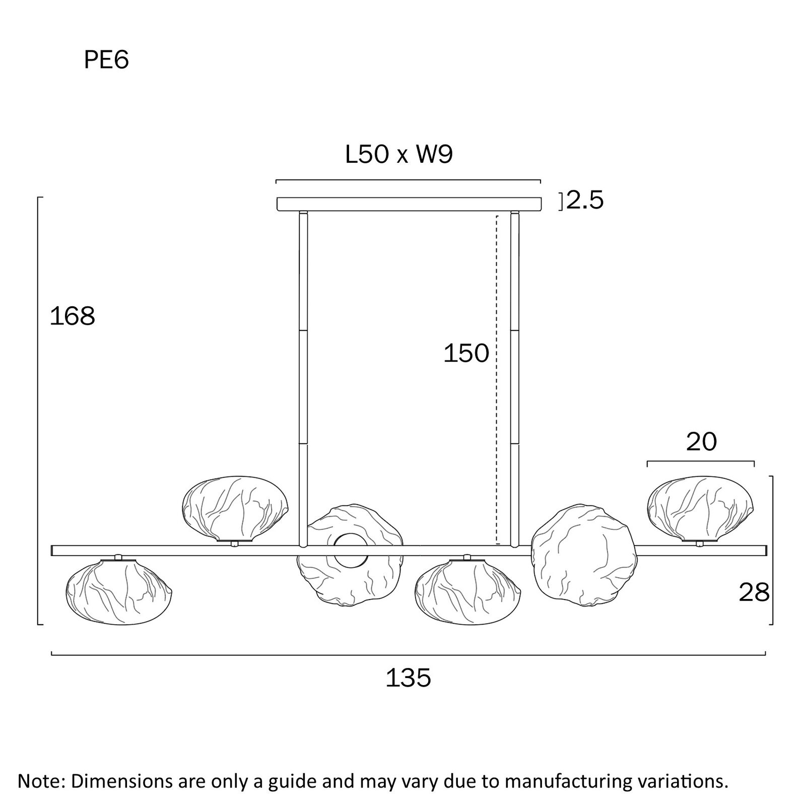 - Globe Type: 6 x G9 (not included)