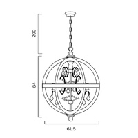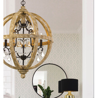 The eye-catching Florin pendant is a french crystal teardrop chandelier framed by a classic wooden open cage orb. The distressed timber combined with the iron accents soften the industrial look and add a touch of glamour. Available as a 5 or 8 light pendant.