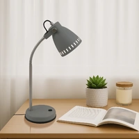 The Nova desk lamp amalgamates the finest elements of contemporary design. Spun metal shade to house a standard A60 globe attached by a saddle deco and a half flexi arm for adjustment. On/off rocker switch located on the lamp base. Also available as floor lamp.