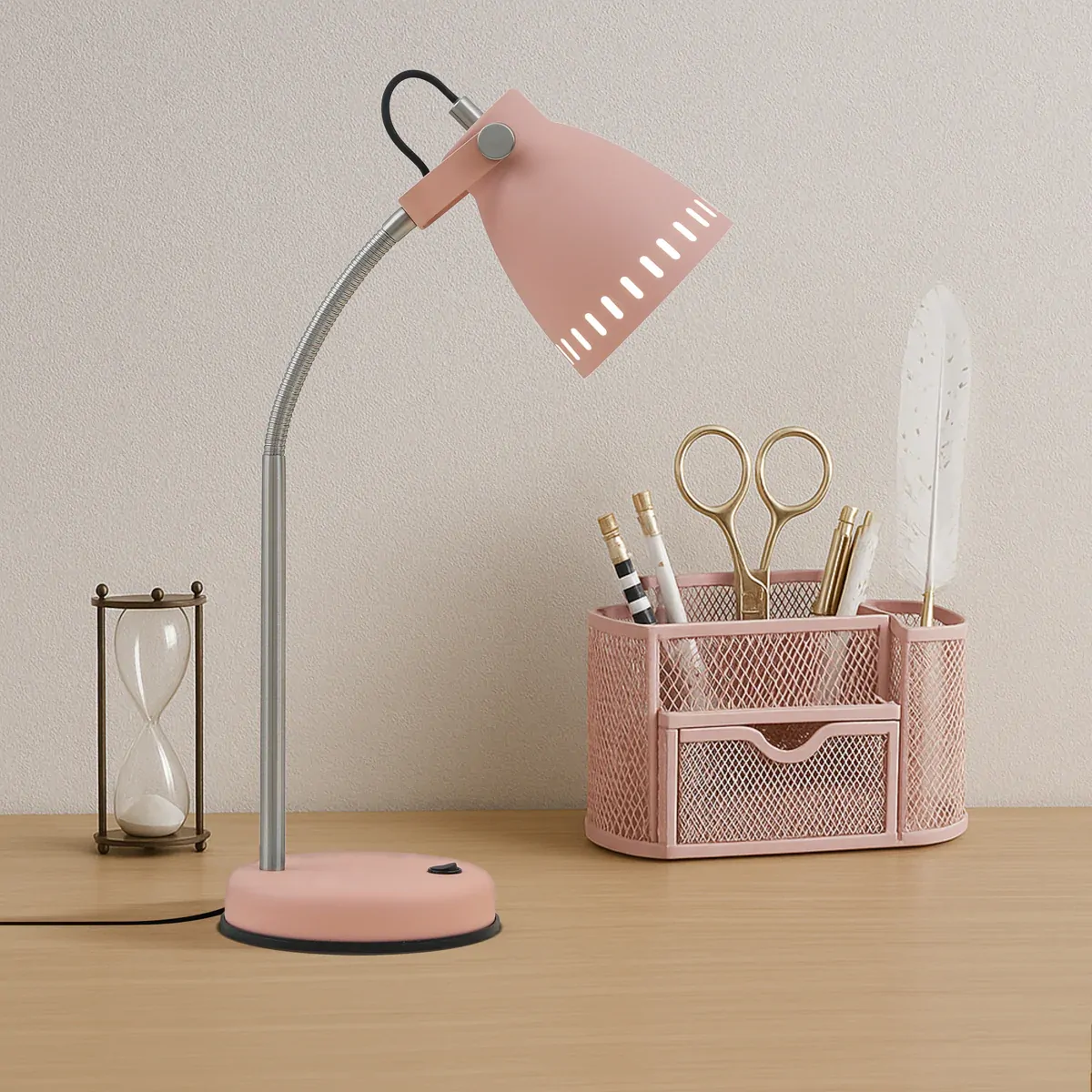 The Nova desk lamp amalgamates the finest elements of contemporary design. Spun metal shade to house a standard A60 globe attached by a saddle deco and a half flexi arm for adjustment. On/off rocker switch located on the lamp base. Also available as floor lamp.