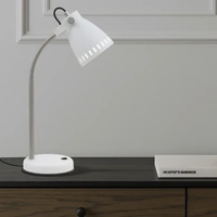 The Nova desk lamp amalgamates the finest elements of contemporary design. Spun metal shade to house a standard A60 globe attached by a saddle deco and a half flexi arm for adjustment. On/off rocker switch located on the lamp base. Also available as floor lamp.