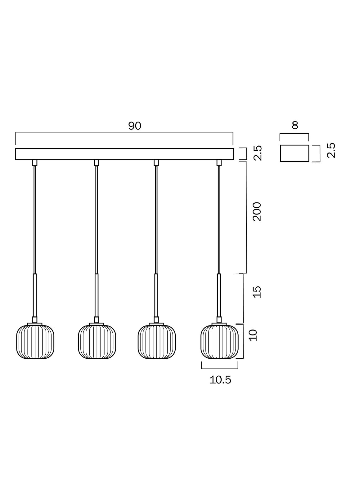 BOBO 4 PENDANT 4*3wG9 NON-DIM L900D110cab2.0 BLACK / SMOKE / 3000K