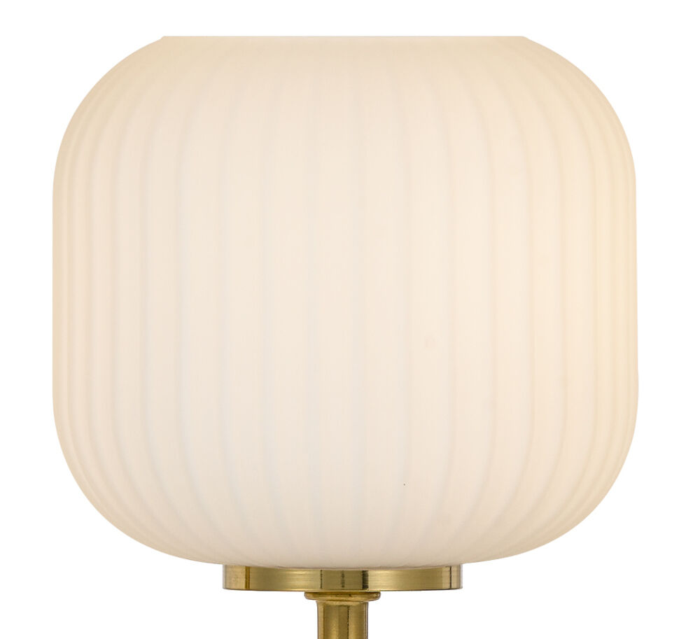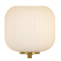This early century ribbed barrel glass gives a minimalist allure and sleek style for any space in your home. The BOBO collection is best illuminated with a LED twinkle globe accentuating the ribbed surface of the shade. The family includes a 1 light pendant, 1 light wall lamp, 1 light table lamp,2 light table lamp, 4 light bar pendant, 5 light round pendant and 10 light round pendant. Available in Antique gold with opal matt shade or black with smoke.