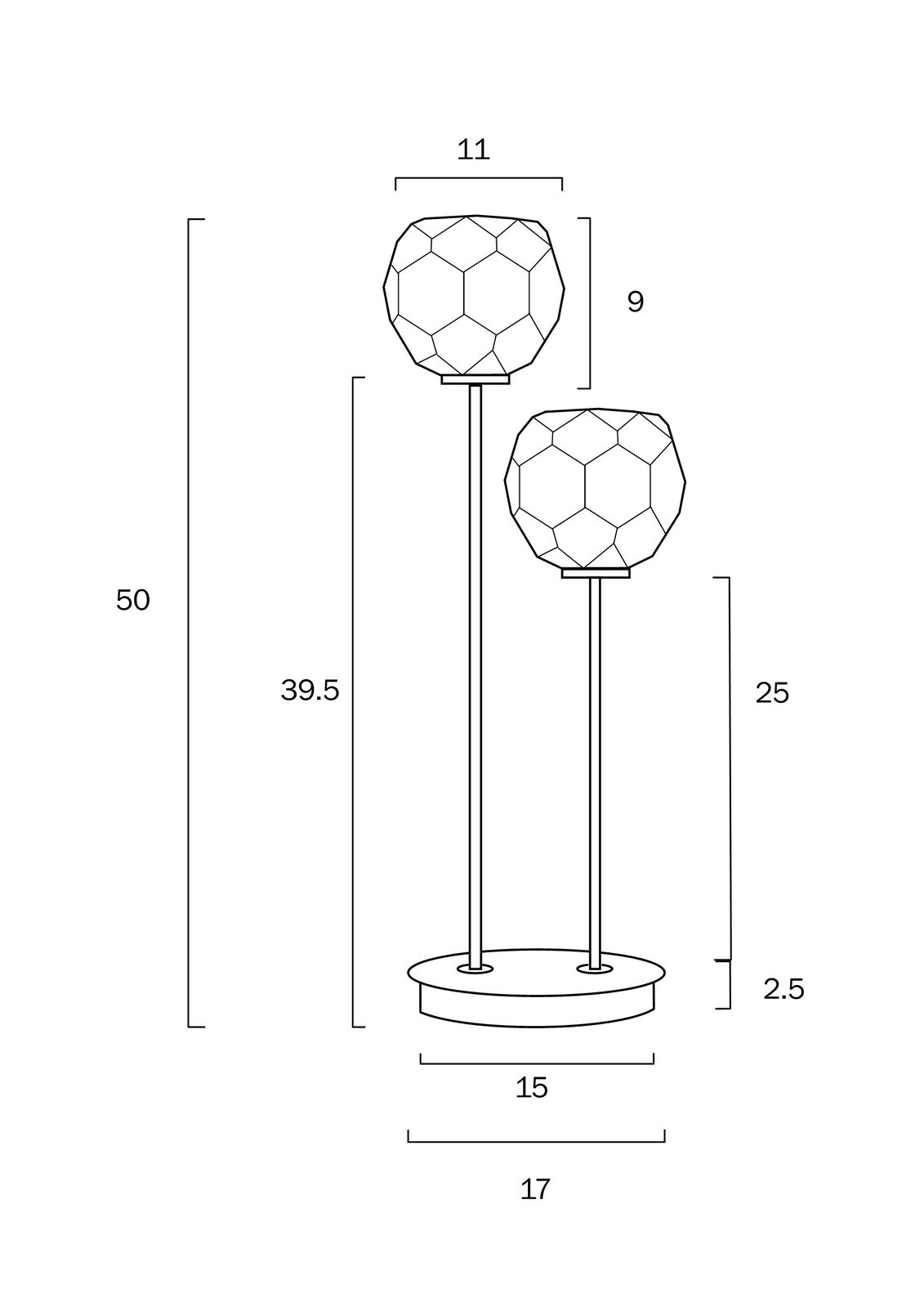 ZAHA 2 TABLE LAMP 2*3wG9 NON-DIM H500 ANT.GOLD / CRYSTAL / 3000K