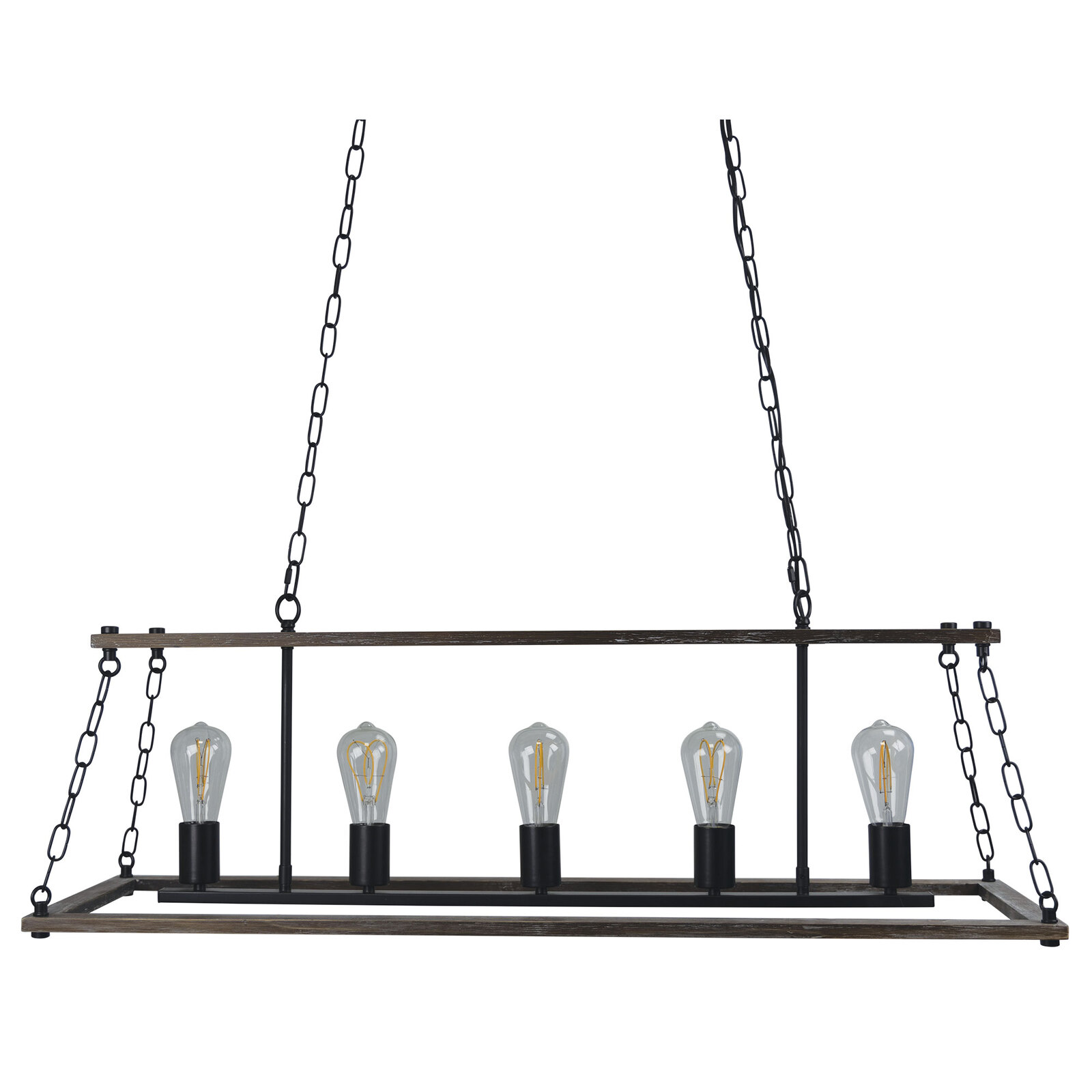 ISLAND 5 LIGHT PENDANT TIMBER & CHAIN