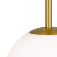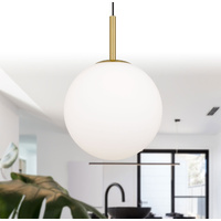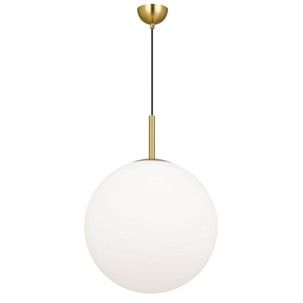 The Bally pendant is the essence of pure and simple lighting design. The sphere is finely blasted opal glass resembling the surface of fresh snow. The rounded shape is continued with the minimal metal gallery. A short metal stem finishes the story of mid-century modernism. Available in 4 sizes and 3 metal finishes.