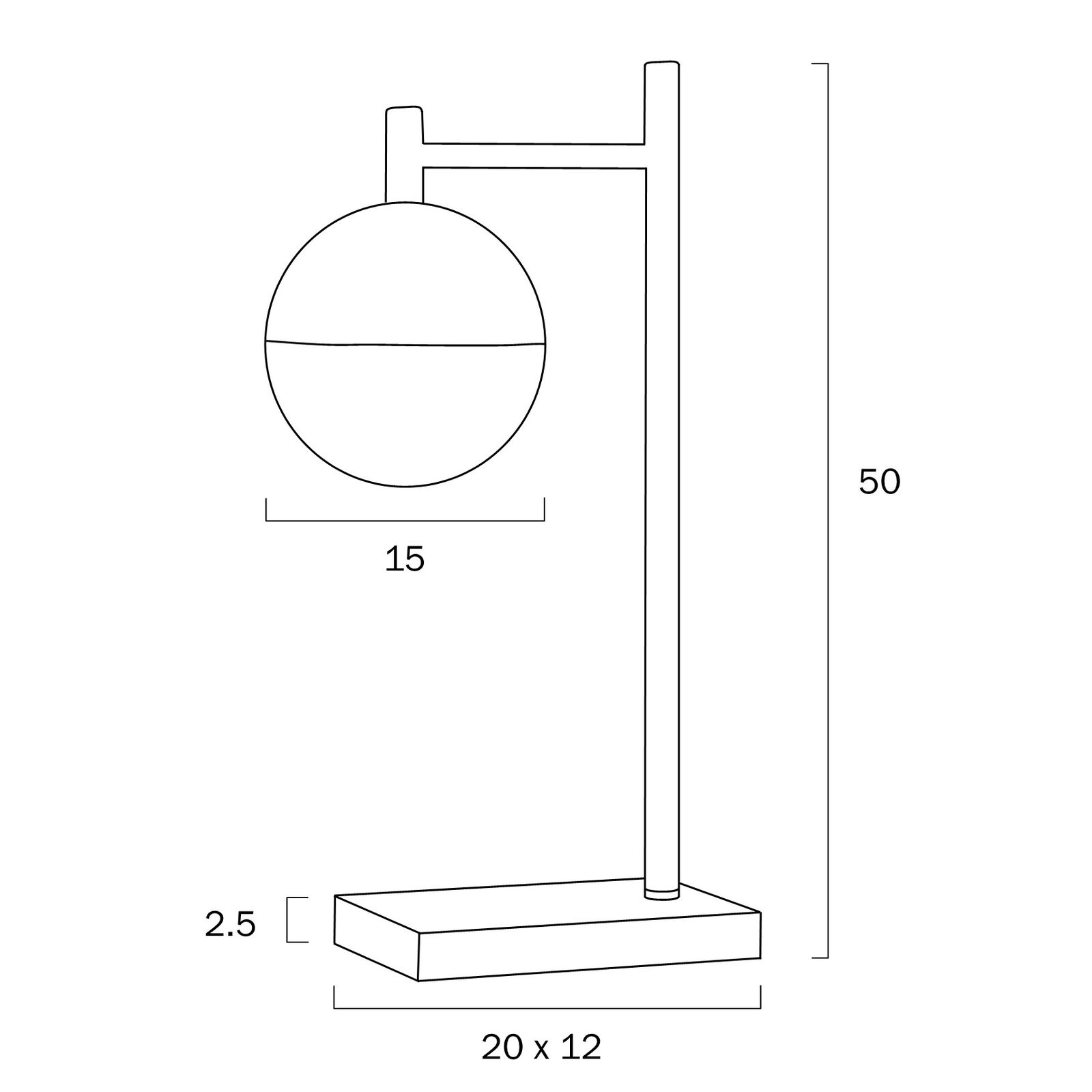 The Basilo table lamp is characterised by the simple industrial look. The glass sphere is capped and half enclosed with metal to soften the upward spill of light.