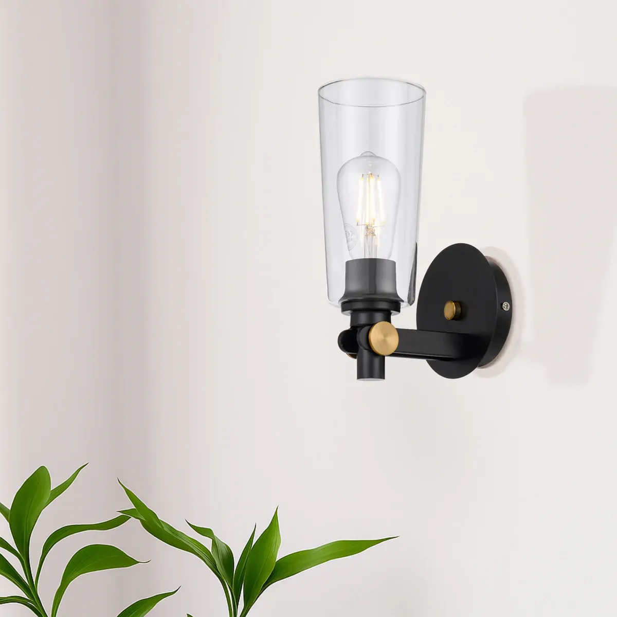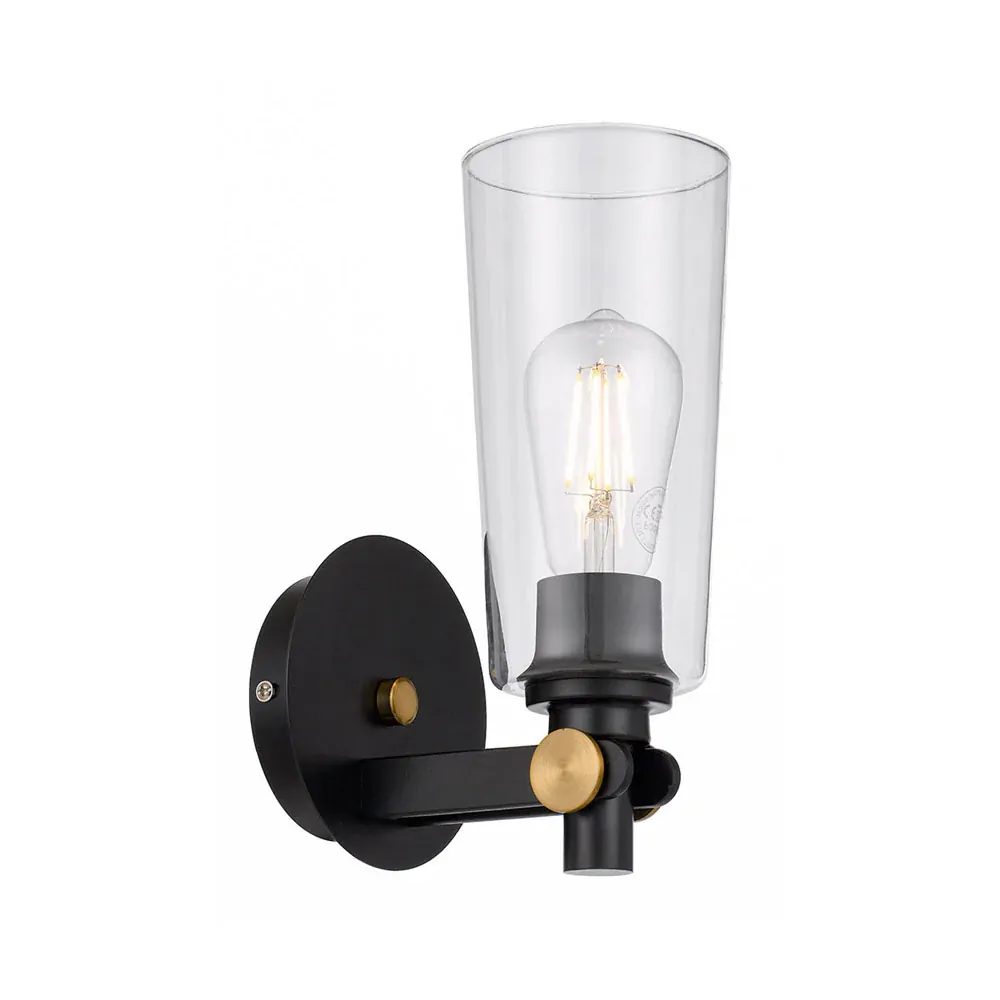 DELMAR WALL LAMP 25wE27max D:125 H:270 P:170 BLACK / ANT.GOLD / CLEAR