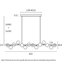 MORAN 14LTS PENDANT 14x6wG9max L1500W:245H:245 ROD:2x6001x300 BLACK FRAME/OPAL GLASS