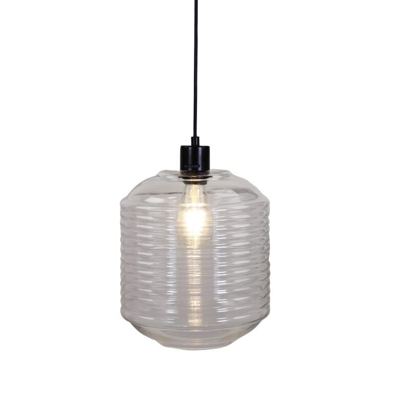The Marconi Pendants rustic design pairs perfectly with natural materials. The simple styling of the black metalware contrasts well with the decorative clear glass shade. The opening in the bottom of the shade allows for easy bulb access. Suspension length can be reduced by the installing electrician.