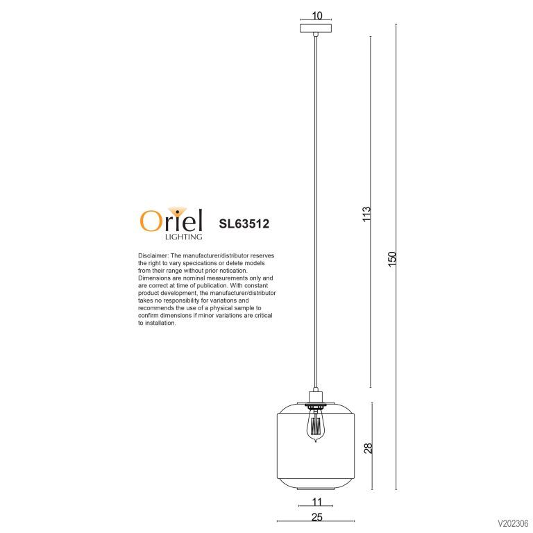 MARCONI.25 1LT PENDANT CLEAR GLASS