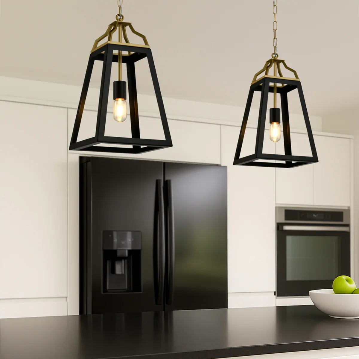 Elevate your home with the Monteal Pendant Family, radiating a contemporary charm through its open lantern design. The black iron frame exudes modern elegance, complemented by a striking gold satin crown.