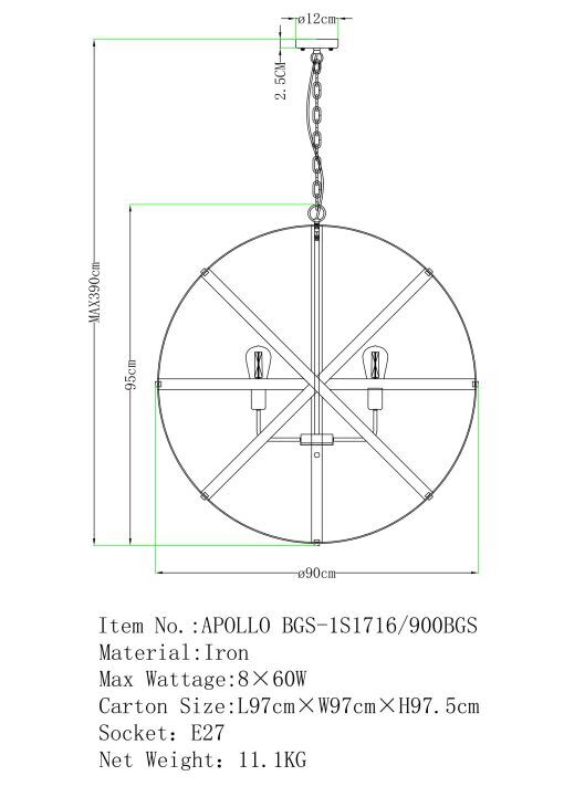 Apollo P8 BRZ/GLD 8 Light E27 90cm Orb Pendant Bronze Gold