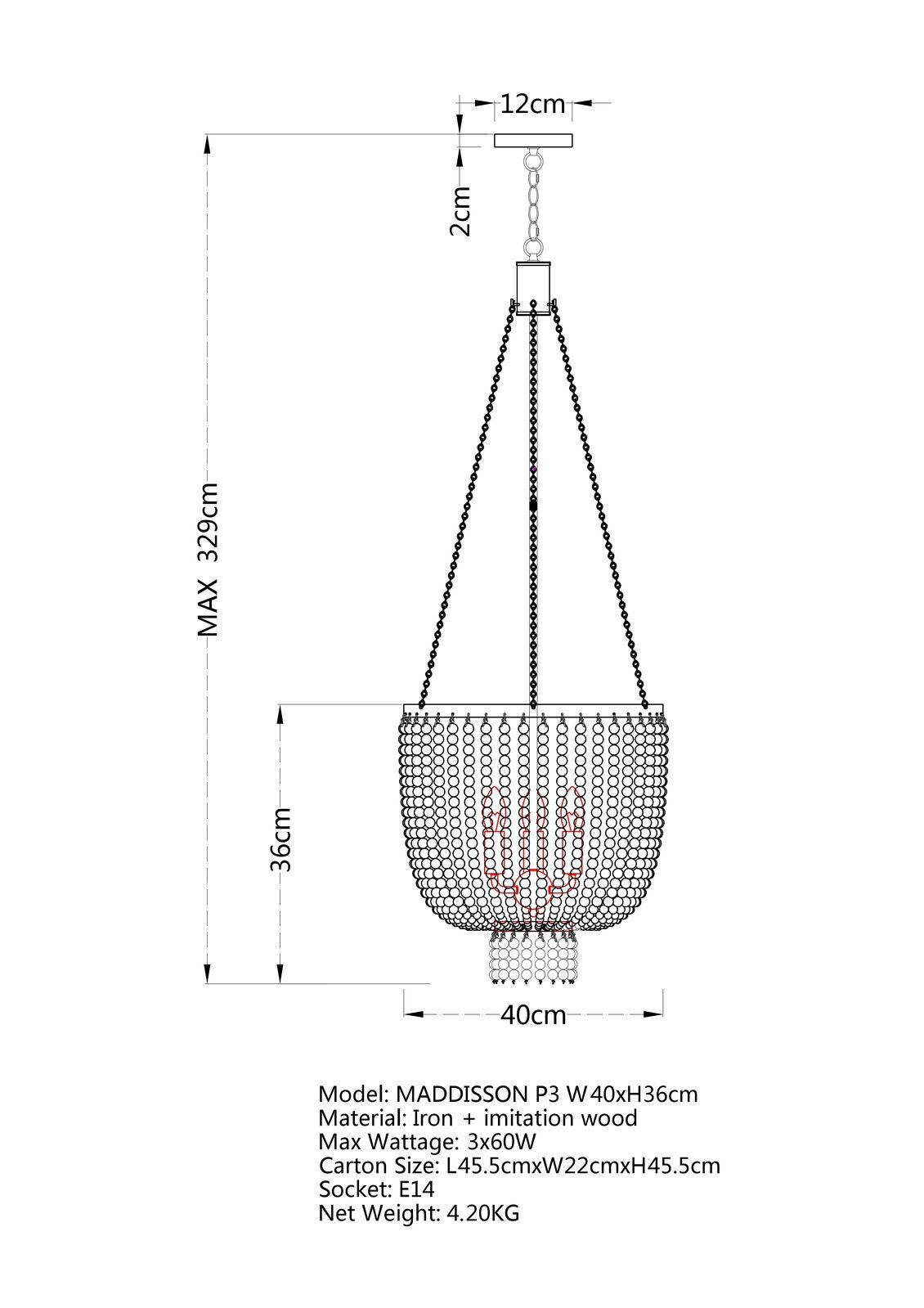 Aged gold leaf and stressed bronze finishes accompany carefully hand painted timber beads, taking this popular style to the next level. The MADDISON collection has been thoughtfully designed, enabling the chandelier to be shortened for low ceiling applications. Suitable for dining, living, hallway, bedroom, stairwell or void areas, this truly is a statement piece.