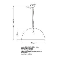 Newport 70cm BLK-GLD 1 Light Large E27 Dome Pendant Black/Gold Leaf