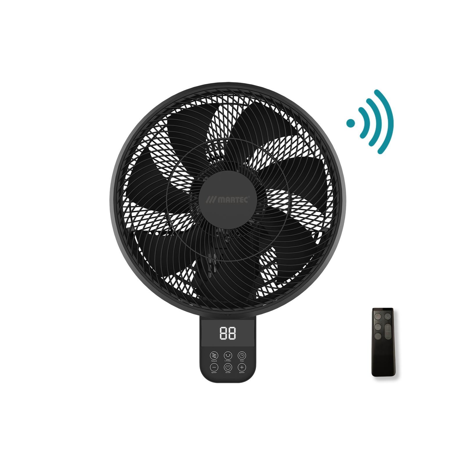 Avalon 350mm 14" 10 Speed Remote & WIFI 70W DC Wall Fan With 8hr Timer Black