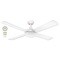 Lifestyle DC Motor 1320mm 4 Blade Ceiling Fan & 24w Tricolour LED Light with Remote Control White